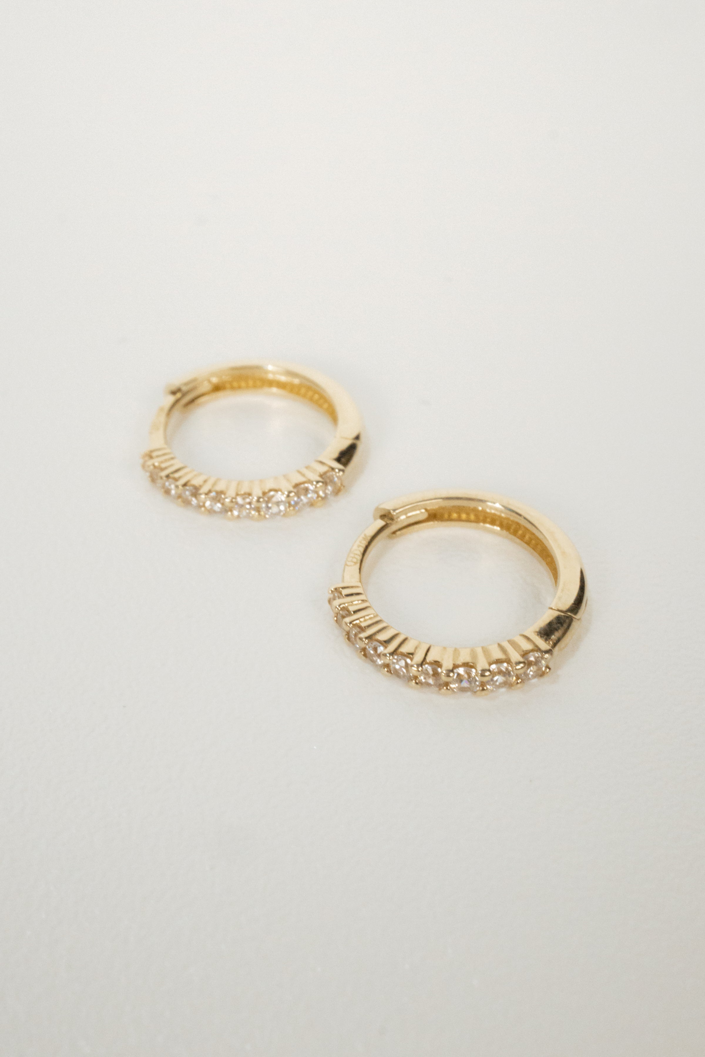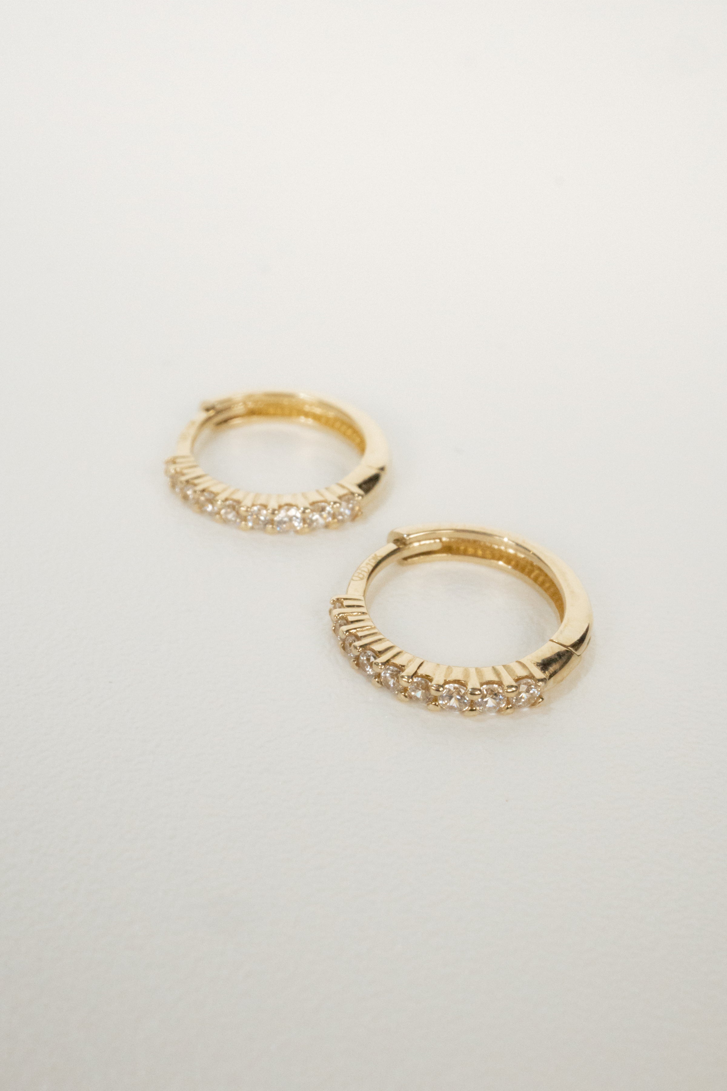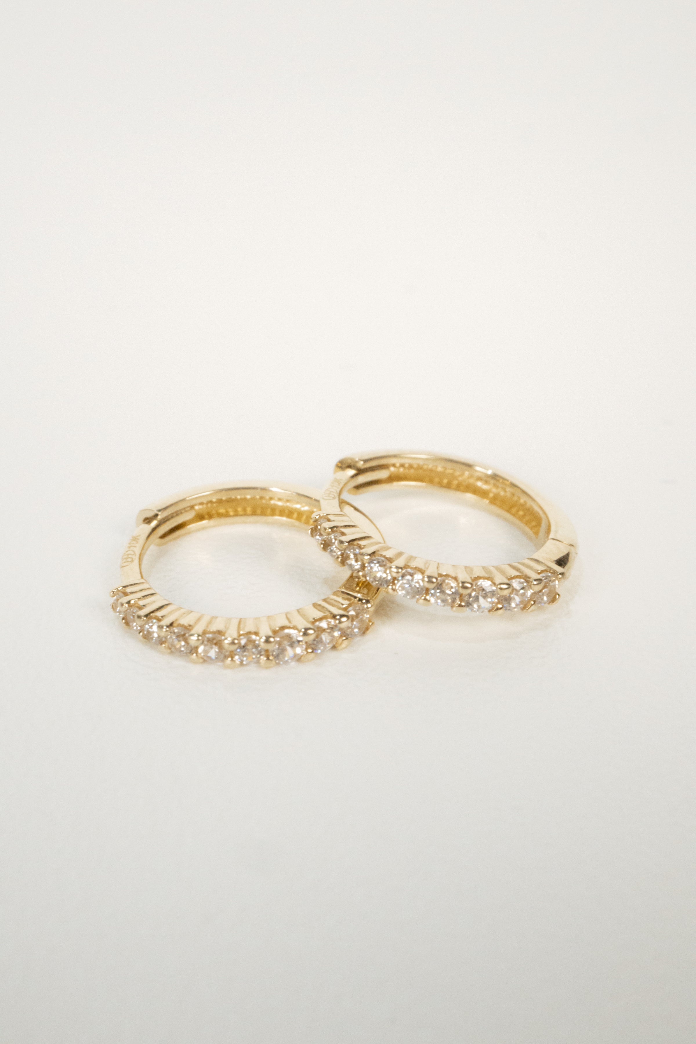 Cubic zirconia makes these huggie hoops shimmer.