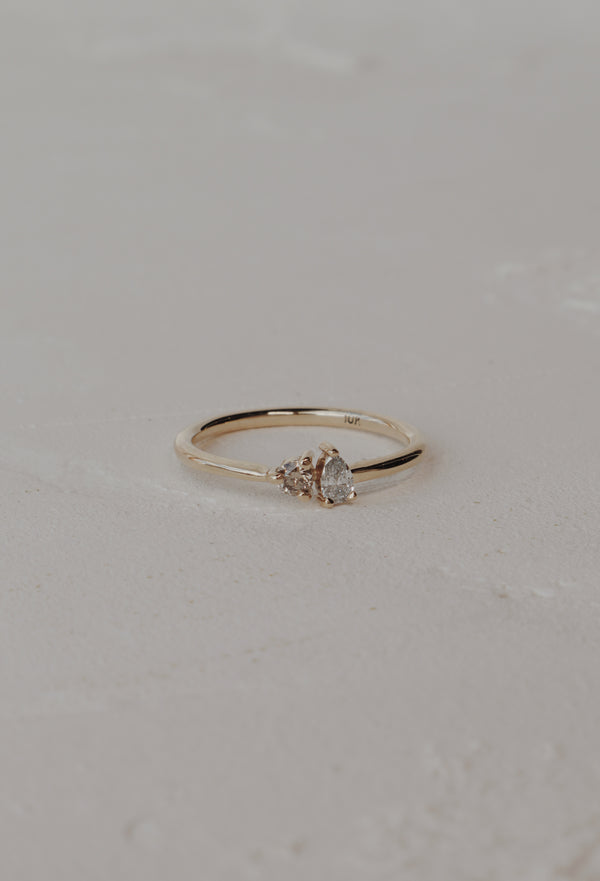 10k Toi et Moi Stacking Ring- Champagne Diamond & Lab Diamond