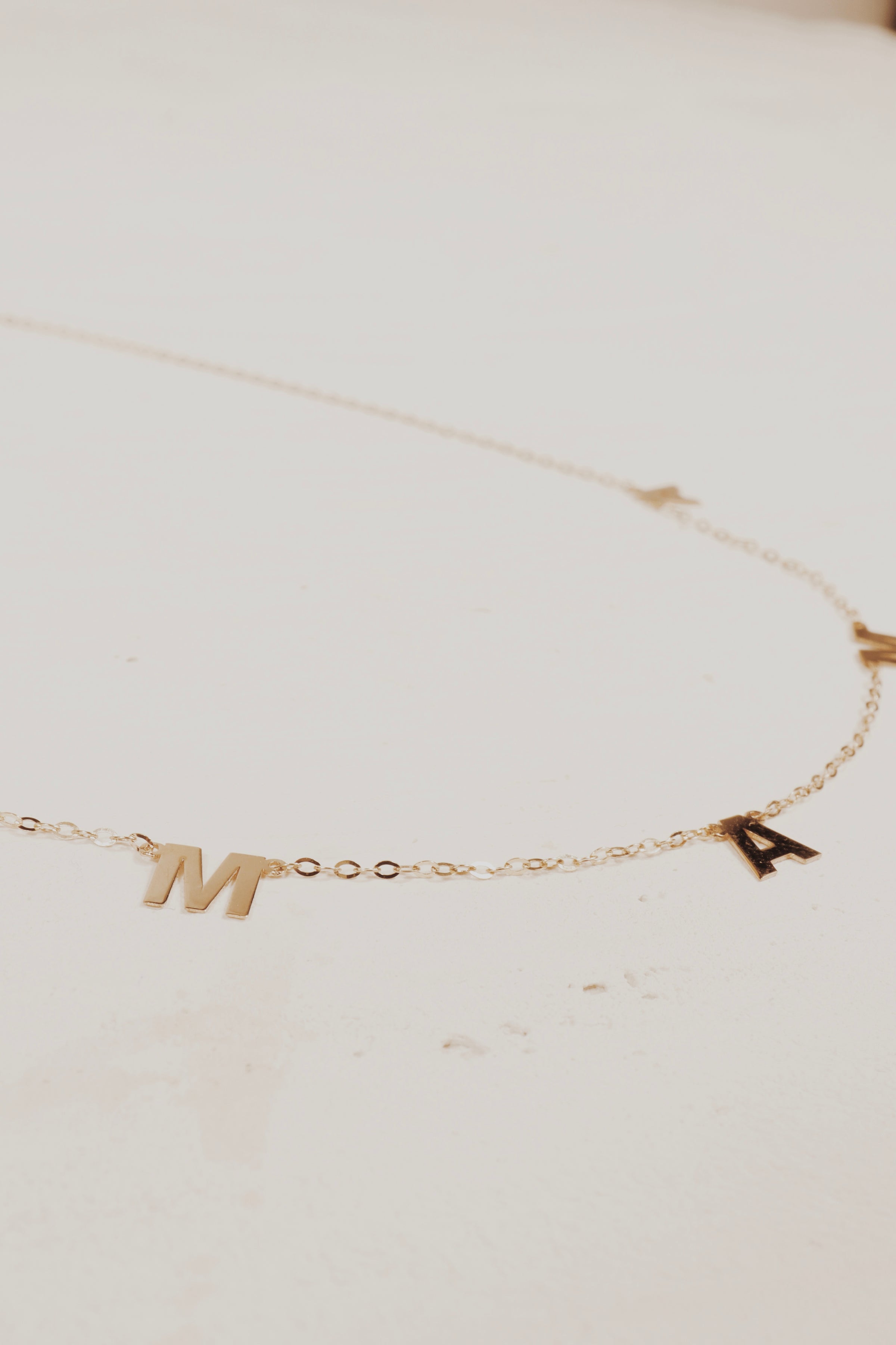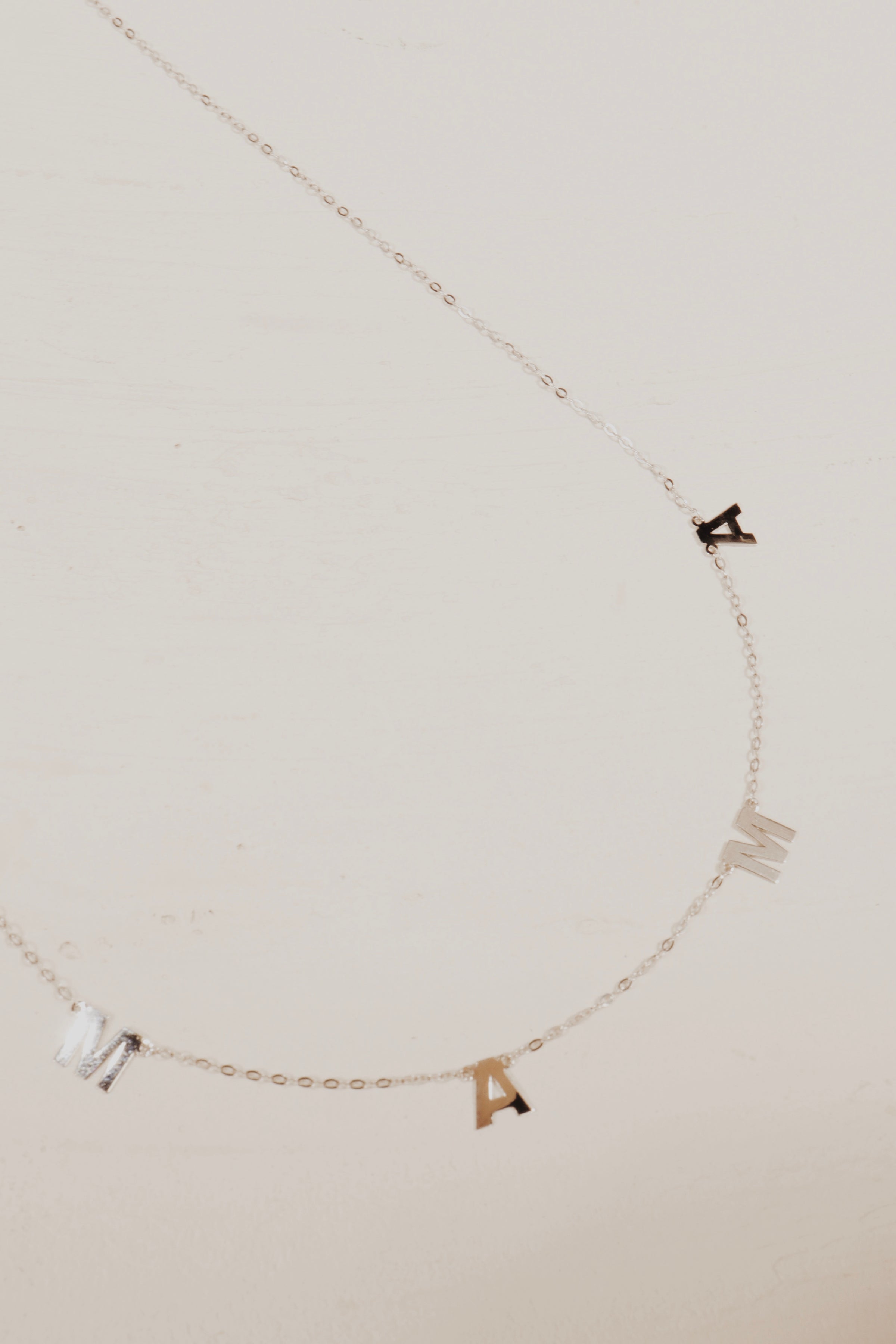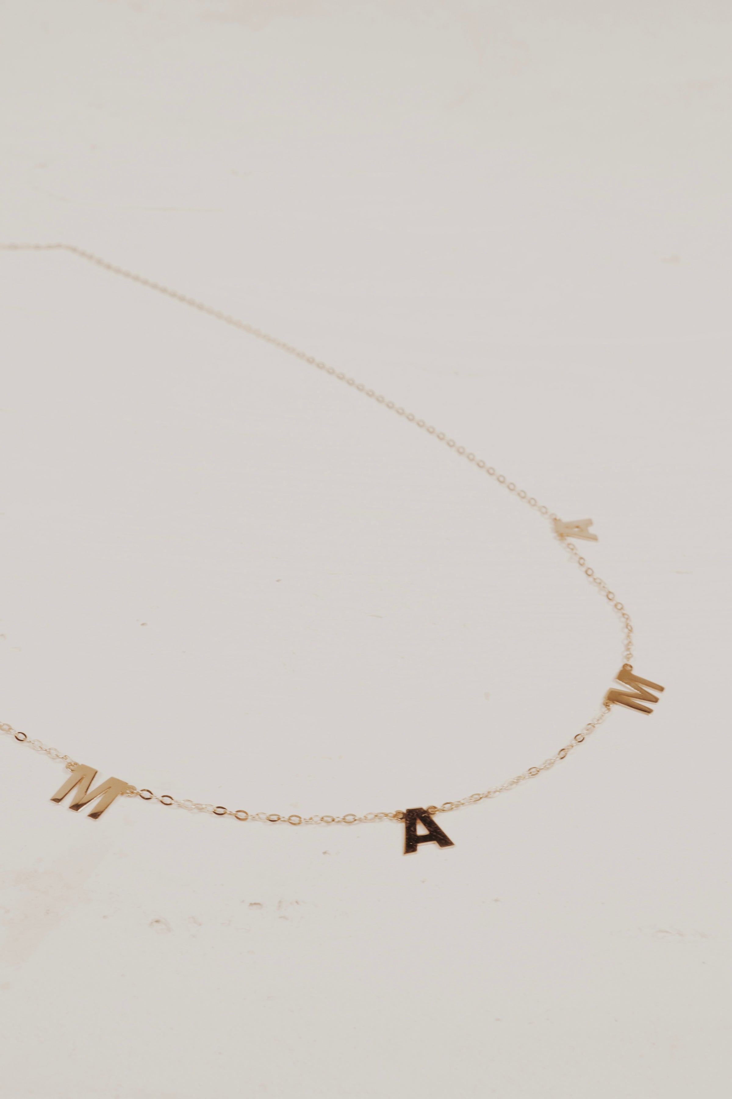 Mama spaced out across a dainty sold gold chain.