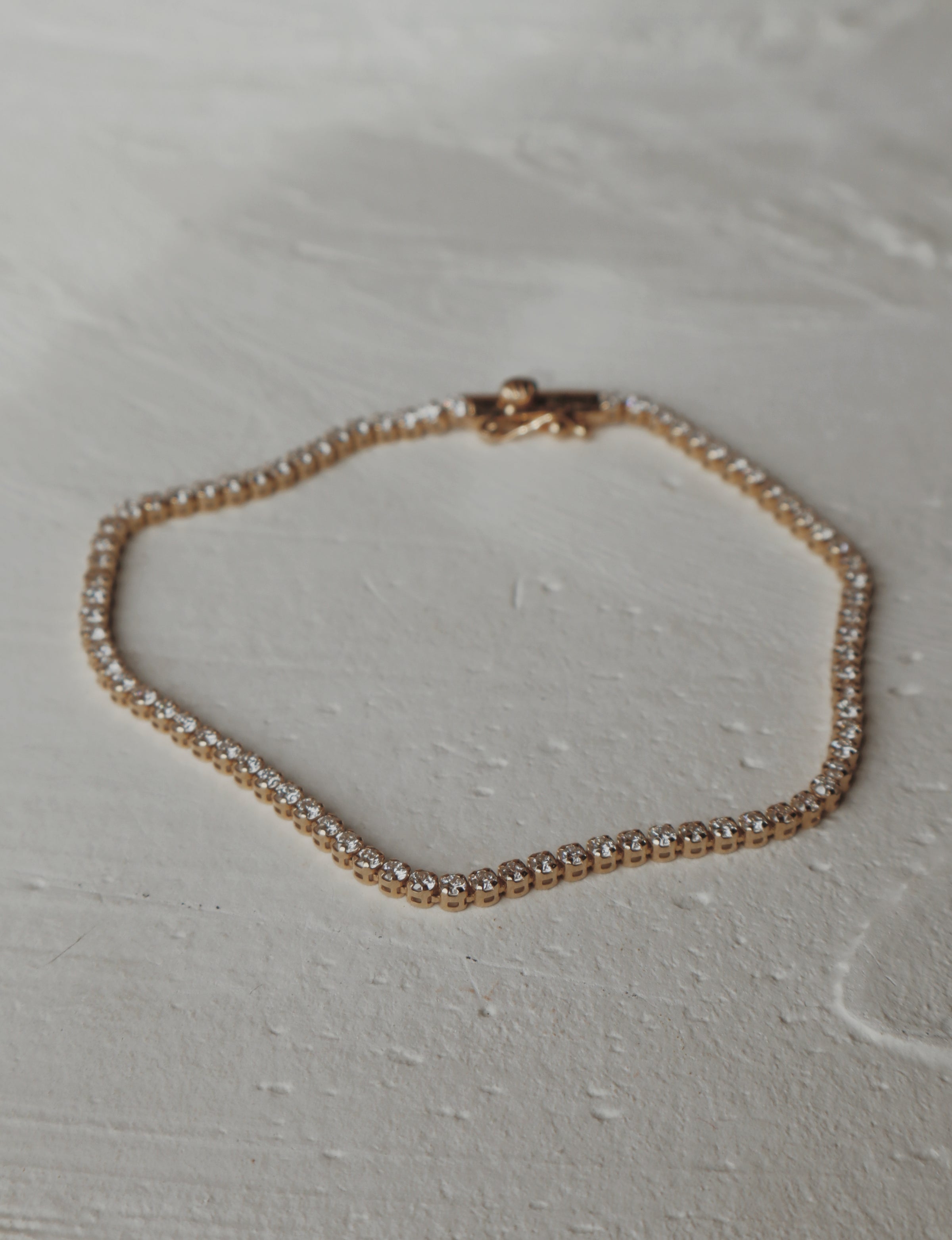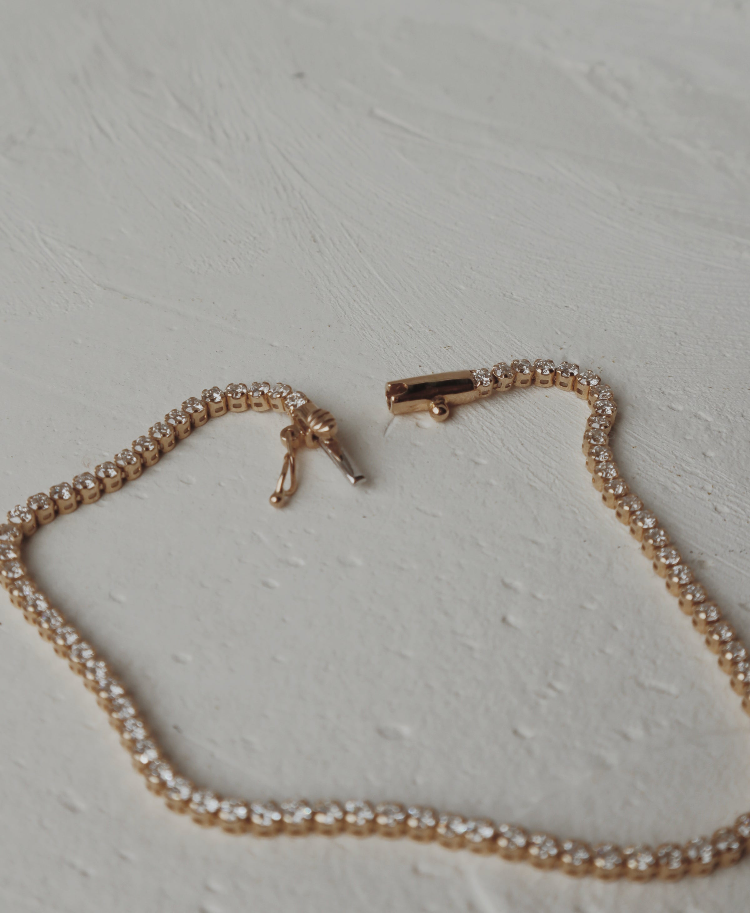This stunning tennis bracelet is set in solid gold with just over 1.6 carats of laboratory grown diamonds.