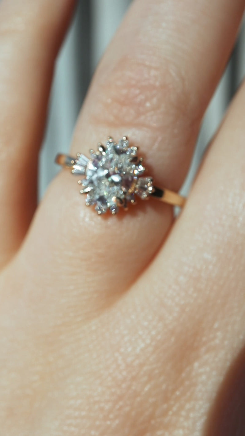 Expertly designed and crafted, the Oakley Oval Halo Engagement Ring is feminine, detailed, and boasts with a baguette and round laboratory grown diamond halo. The centre stone is 1.09 carats, accompanied by 20 additional laboratory grown diamonds. This piece has maximum brilliance and sparkle. This high quality centre diamond is colourless and eye clean.