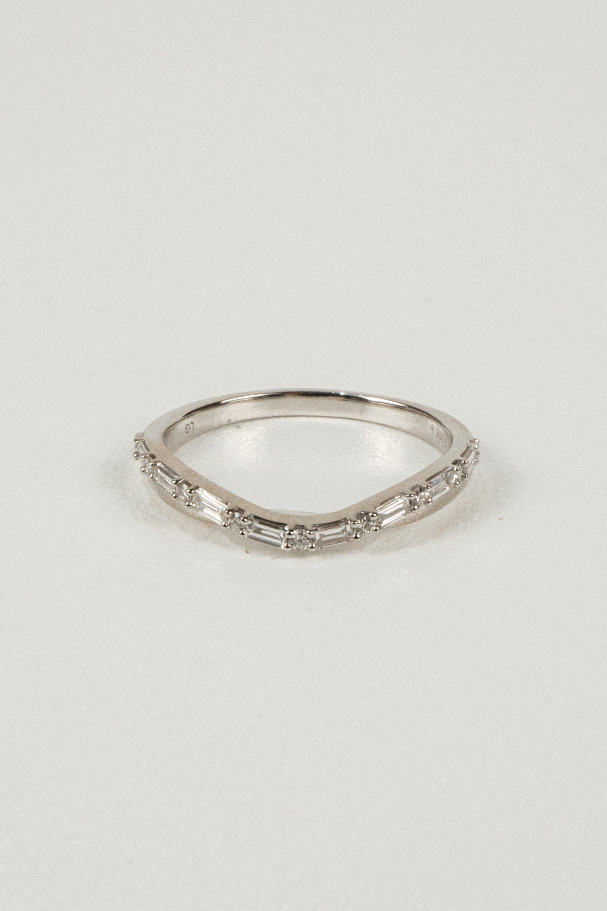 The Everette band has a slight contour and a sparkle that will pair well with any piece in a wedding or anniversary stack.