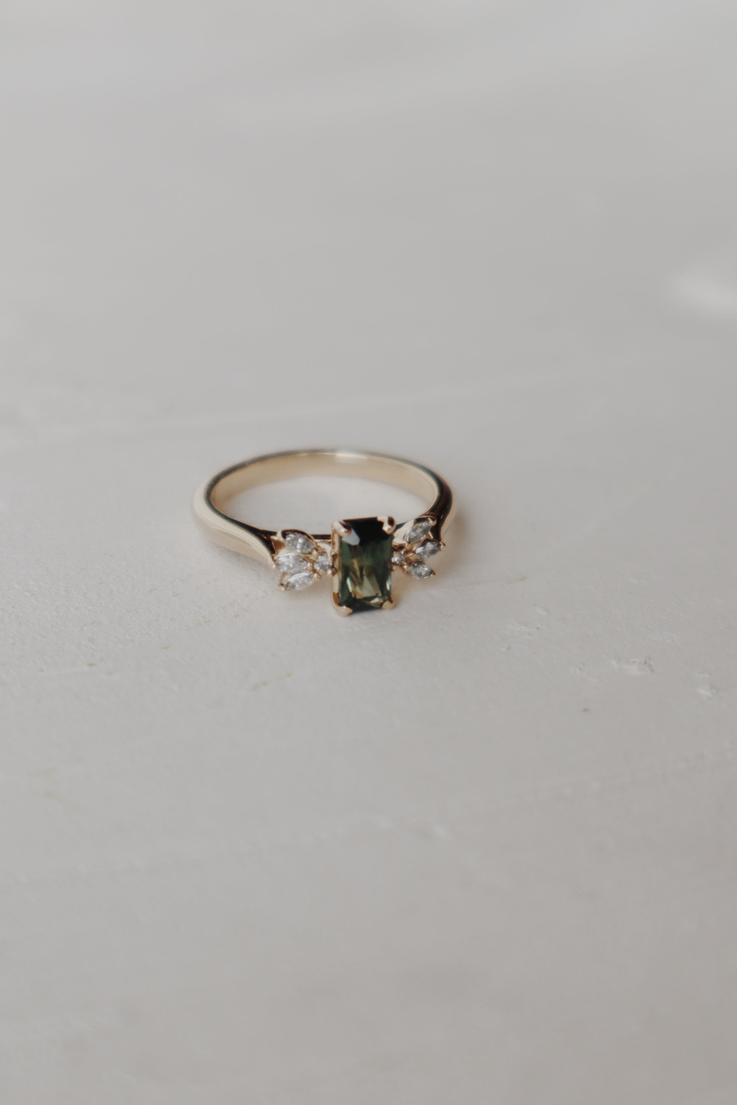 Expertly designed and crafted, the Elodie Engagement Ring showcases a sleek and modern green sapphire. This ring has great brilliance, clarity, and character.