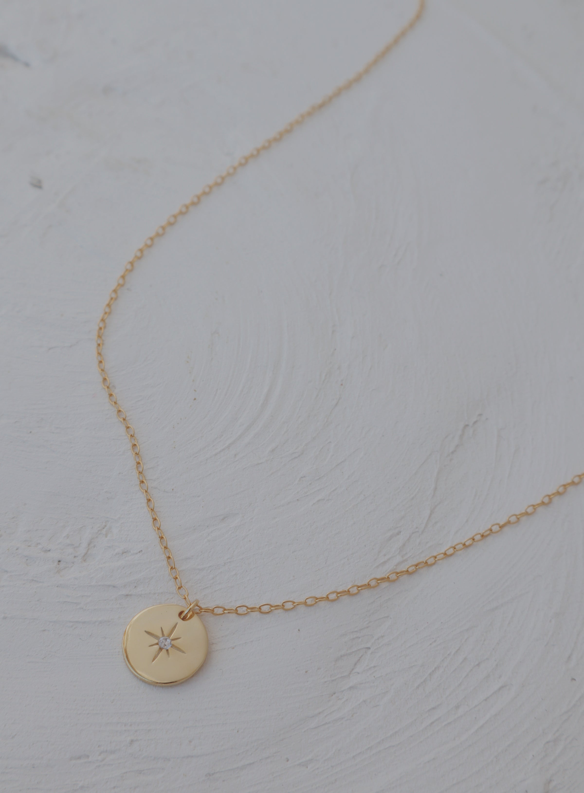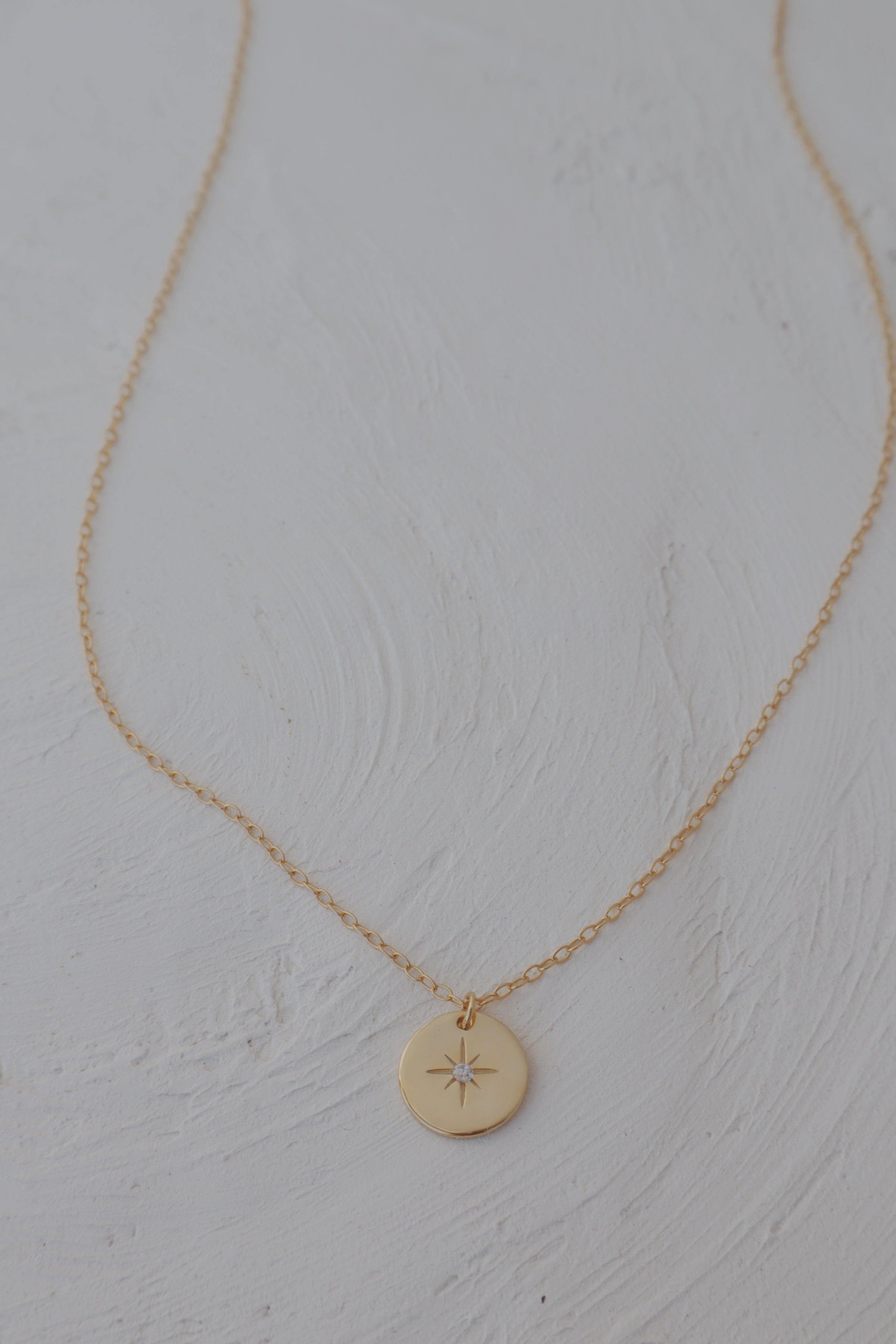 Round pendant with in inlaid cubic zirconia star.