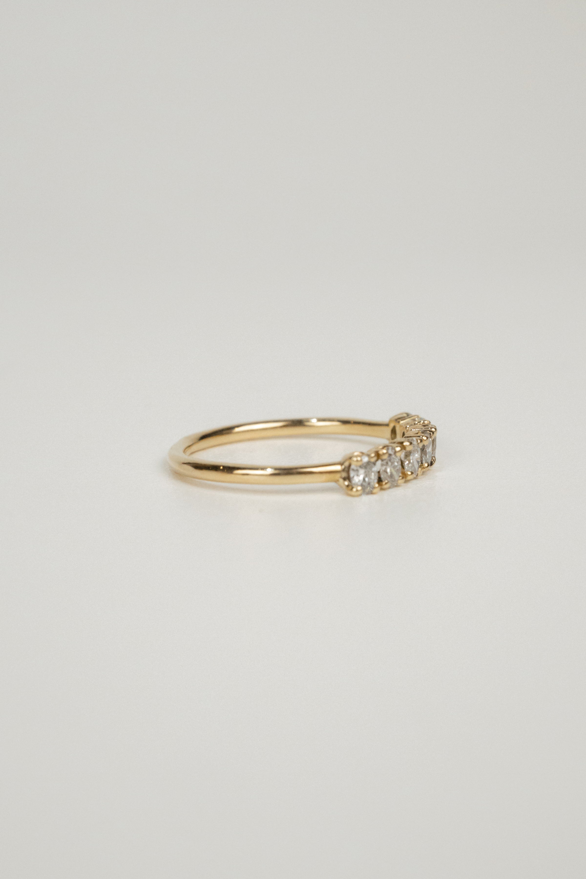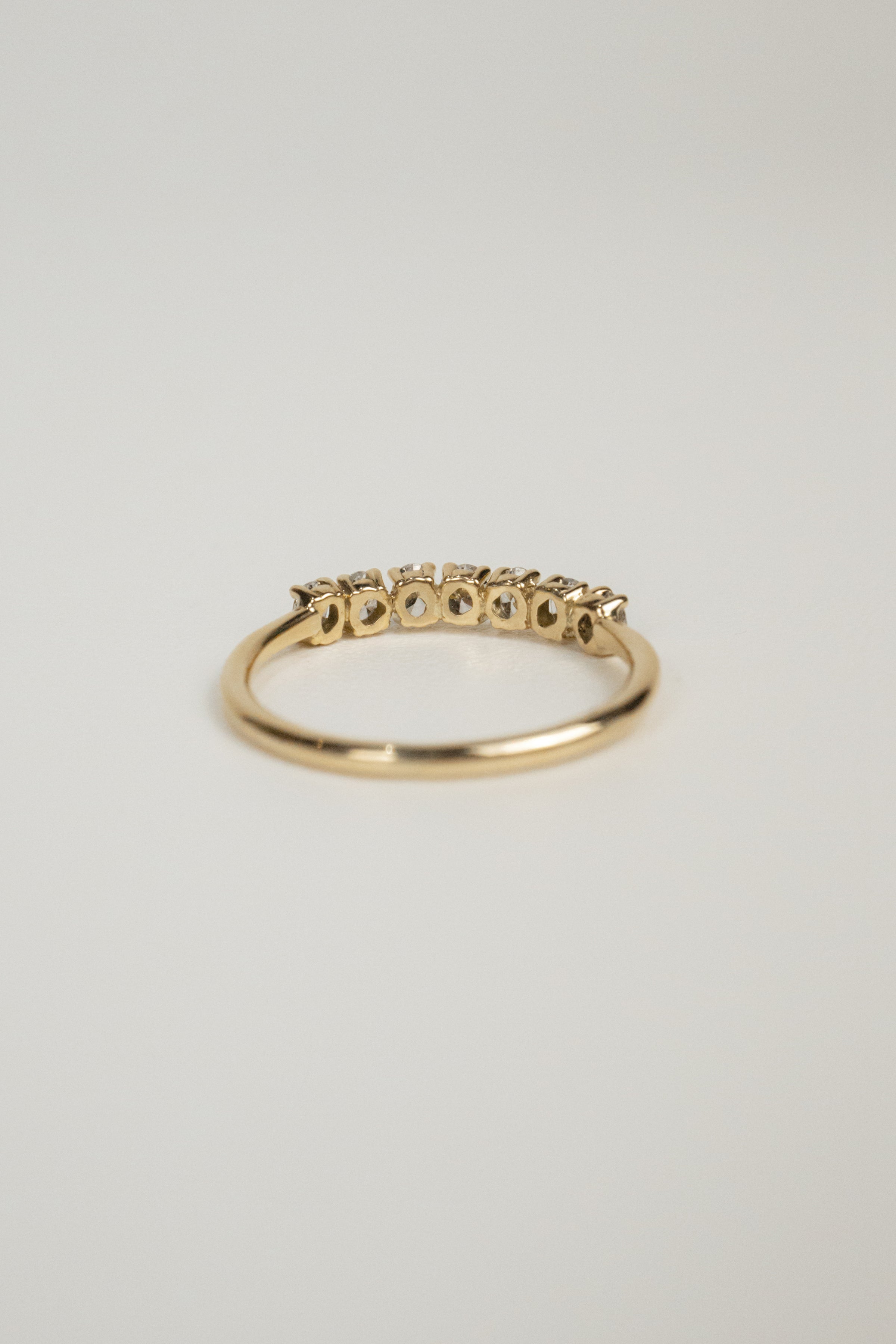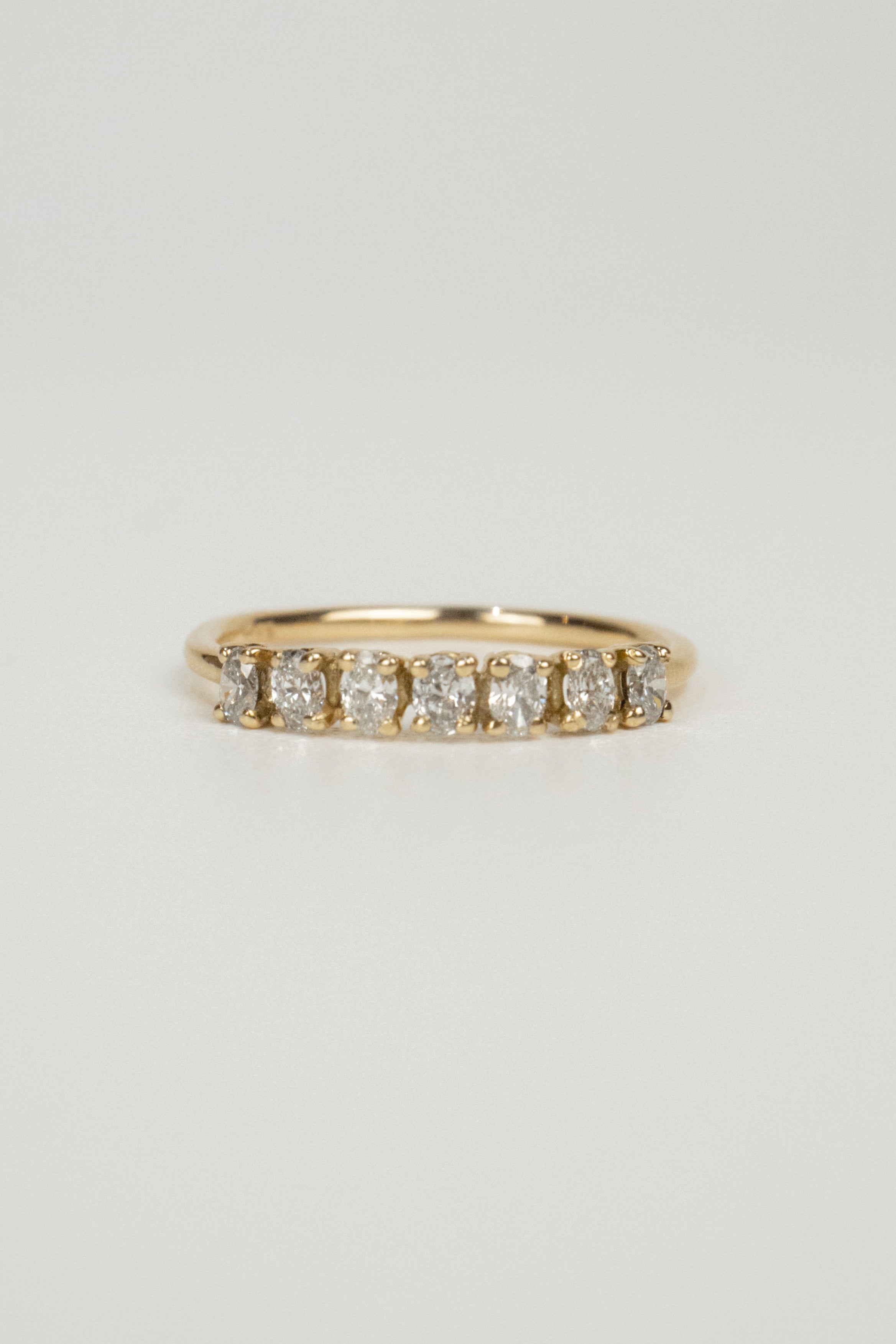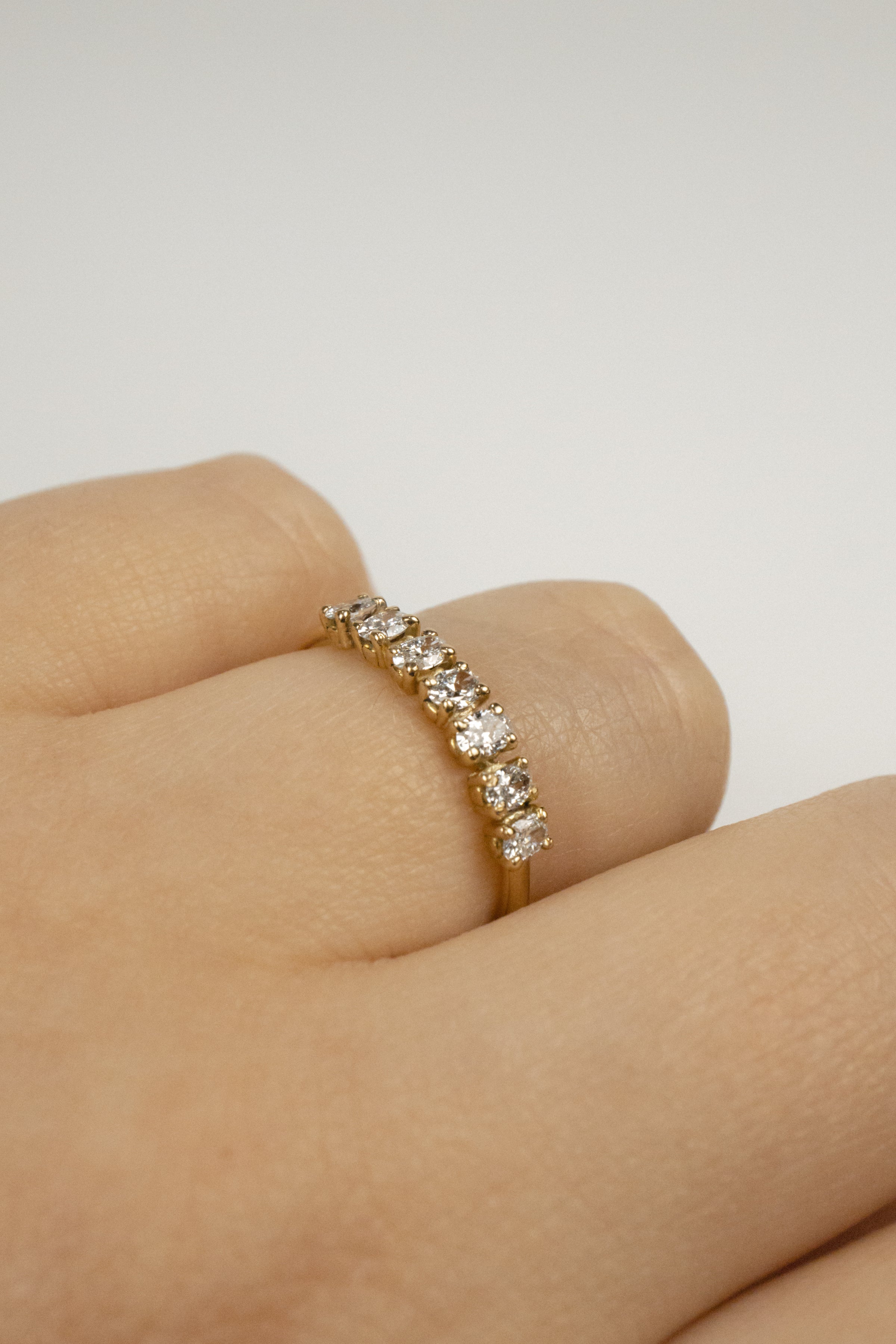 Tia is a stunning band featuring seven laboratory grown diamonds. This piece can be worn as a wedding or anniversary band, or as a shiny statement all alone.